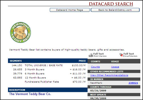 For example, even the Vermont Teddy Bear company rents its list of customers. For just $0.10 per name, you can send them pretty much whatever you want.